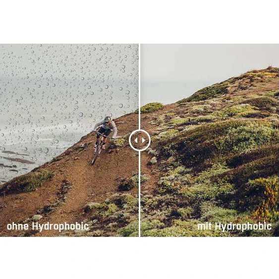 - Helder zicht dankzij een water- en vuilafstotende nanostructuur op de lens